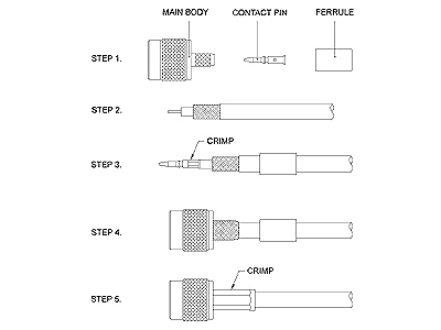 STEP 3. Insert inner conductor into the Contact Pin and crimp itor solderwith the Crimp Tool as