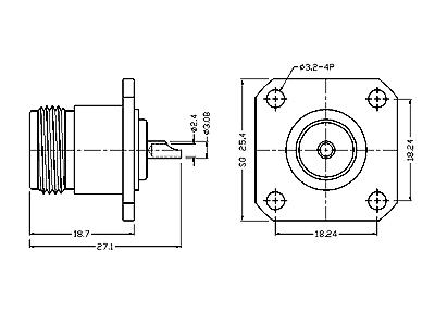N Female Panel Mounting With 4 Holes