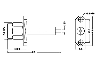 Name :SMA Male Reverse Polarity Panel Mount 2 Hole SQ