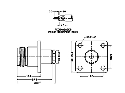 | Name :N Female Clamp-on Type Panel Mount 4 Holes |