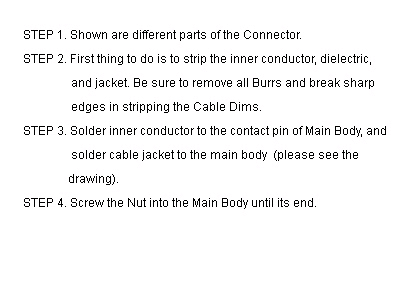 STEP 3. Solder inner conductor to the contact pin of Main Body, and solder cable jacket to the main
